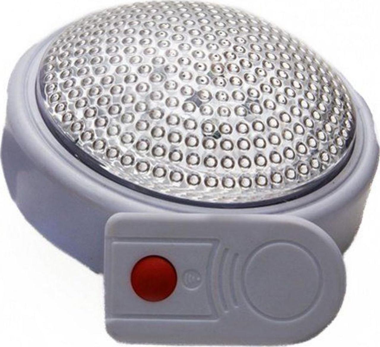 | Доп. информация | Комплектация: светильник, пульт управления. Материал: полистирол, металл, светодиод.. Радиус действия пульта управления: 9 м. Работает от 4 батареек АА типа (не входят в комплект). Максимальная мощность светильника: 1W, 30-40 Lm,; класс защиты: III; тип ламп: 5 LED (SMD2830) |
