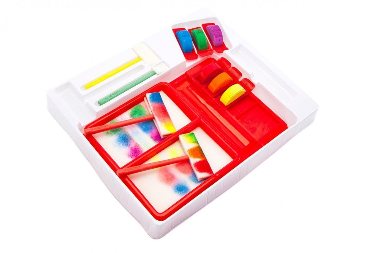 личность с оригинальным мышлением? Набор для творчества «РАДУГА» позволит Вашему малышу создавать необычные и волшебные миры на простом листе бумаги! • Комплект предназначен для рисования сразу несколькими цветами с помощью особых спонж-щеток и поддона со сменными красками. Можно перемещать блоки с красками, фиксируя их на подносе. • Благодаря спонжу, малыш не расплескает воду и не запачкает поверхность стола во время нанесения штрихов, а краски сохнут так быстро, что их практически невозможно смазать. • Супер впитывающие губки гарантируют долговечность кисточек. • Комплект очень полезен для развития творческого мышления, фантазии и навыков рисования. Приобщайте своего малыша к миру искусства с набором для творчества «РАДУГА»!