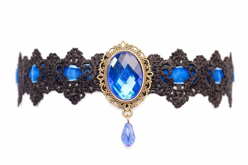 оставалось популярным с рыцарских времен и до наших дней, вдохновляя мужчин на великие подвиги ради дамы сердца? Конечно, облегающее колье-чокер на шею! Изысканный чокер «ЕЛИЗАВЕТА» с атласным декором и крупным сапфировым камнем, таинственно сияющим в самом центре, заставит любого рыцаря преклониться перед Вашей королевской красотой. • Украшение выполнено в элегантном викторианском стиле: черная кружевная основа выразительно оттеняет ярко-синюю шелковую ленту вдоль чокера. • Сердце композиции — овальный сапфировый камень в резной окантовке с нежной бусиной-подвеской. • Основа из мягкой шнуровки приятна к телу. • Имеется продуманная застежка с регулятором длины. • Украшение выгодно подчеркивает линию шею и декольте, что делает его идеальным в качестве инструмента соблазнения. Чокер «ЕЛИЗАВЕТА»: создан покорять и вдохновлять!