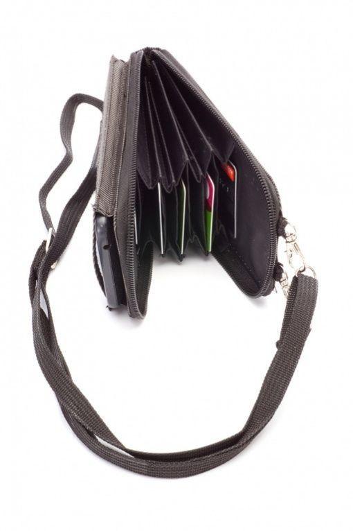 телефон или кошелек? Направляясь на ланч или шоппинг, Вам приходится брать с собой массивный саквояж? Оригинальный аксессуар, совмещающий в себе стильный кошелек, практичный органайзер и удобный чехол для смартфона, вместит все нужные Вам вещицы и займет минимум места. • Пользуйтесь телефоном, не вынимая его из чехла! Отделение для мобильного устройства имеет прозрачную наружную стенку из крепкого защитного материала. • Поместится все! Ведь внутри — семь удобных отделов для карточек, помады, денег, документов и других мелочей. Станьте еще мобильнее с универсальным чехлом для телефона - кошельком!