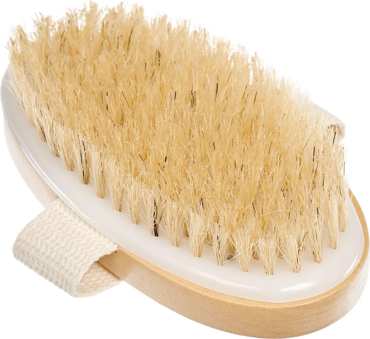 Щётка для сухого массажа из чайного дерева с щетиной кабана с ремешком – эффективное антицеллюлитное средство в борьбе за гладкую и упругую кожу тела в домашних условиях. Массаж сухой щеткой стимулирует кровообращение и лимфоток, активизирует метаболизм, повышает мышечный тонус, способствует детоксикации организма. При регулярном применении кожа разглаживается за счет отшелушивания верхнего ороговевшего слоя эпидермиса, становится упругой, нежной и гладкой. Проявления целлюлита, отеки и растяжки становятся менее заметными. Массаж сухой щеткой предотвращает врастание волос после эпиляции. Сухая массажная круглая щетка выполнена из чайного дерева с щетиной кабана средней жесткости. Корпус щетки гладко отполирован. На нем предусмотрена текстильная ручка, которая делает изделие удобным в использовании. Компактный размер щетки позволяет легко брать ее с собой в поездки и путешествия. ПРЕИМУЩЕСТВА: Повышает упругость и эластичность кожи Стимулирует микроциркуляцию крови, лимфоток Уменьшает отечность, целлюлит Удобная круглая щетка с ремешком Натуральная набивная щетина кабана средней жесткости Компактный тревел-формат